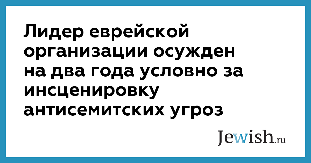 Лидер еврейской организации осужден на два года условно за инсценировку антисемитских угроз