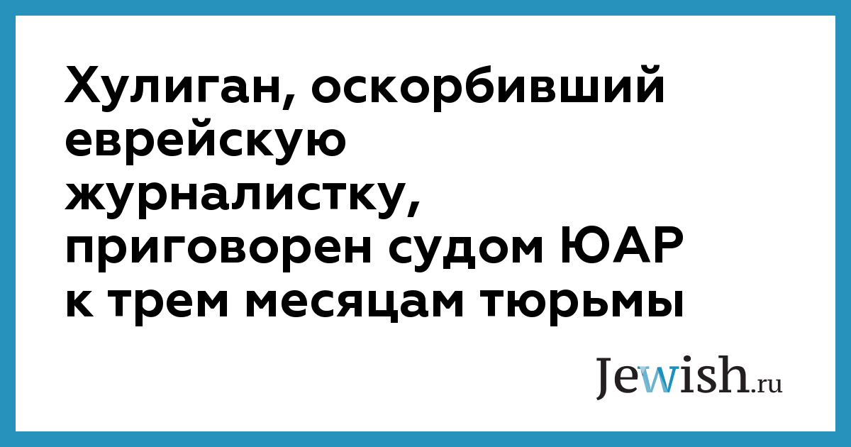 Хулиган, оскорбивший еврейскую журналистку, приговорен судом ЮАР к трем месяцам тюрьмы