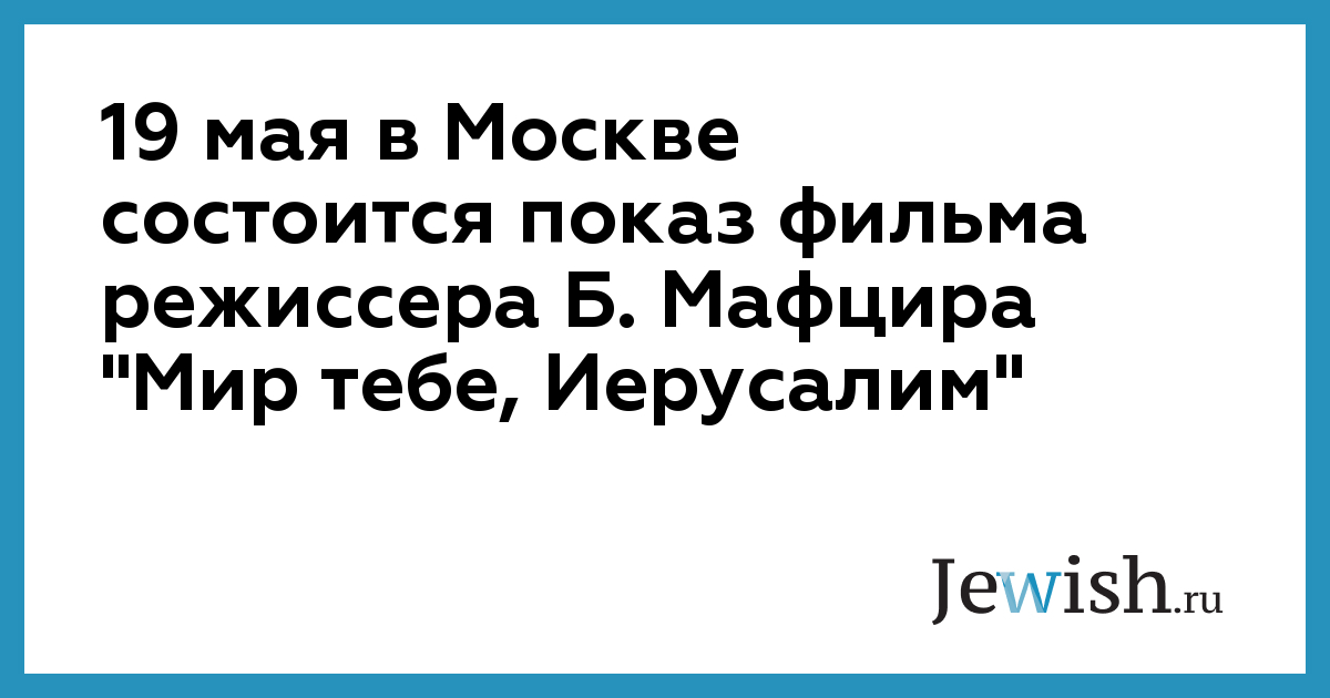 19 мая в Москве состоится показ фильма режиссера Б. Мафцира "Мир тебе, Иерусалим"