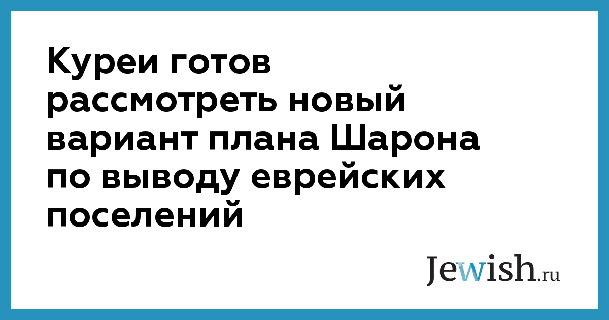 В заключение Куреи отметил, что готов рассмотреть новый вариант плана Шарона по ликвидации еврейских поселений в секторе Газа.