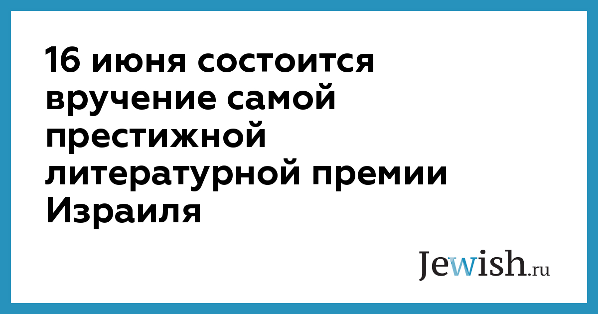 16 июня состоится вручение самой престижной литературной премии Израиля