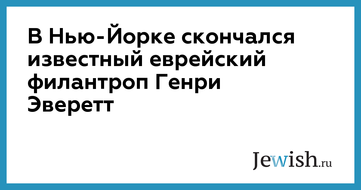 В Нью-Йорке скончался известный еврейский филантроп Генри Эверетт