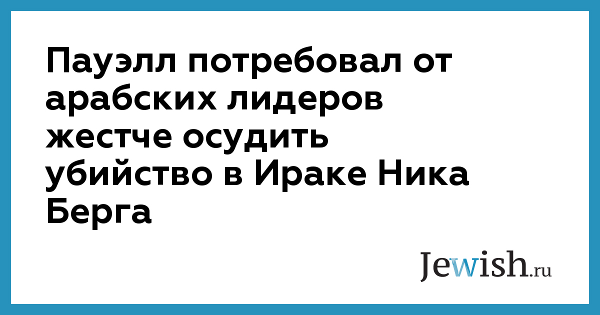 Напомним, что 26-летний американский еврей Николас Берг был обезглавлен в Ираке боевиками террористической организации, близкой к Абу Мусабу аль-Заркави.