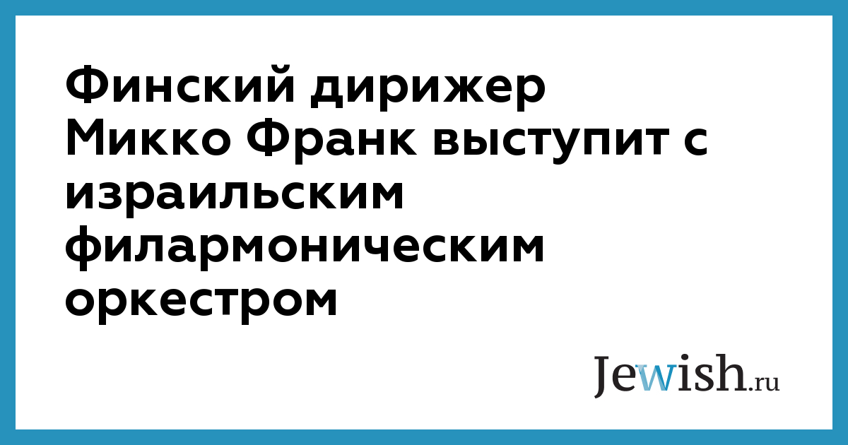 Финский дирижер Микко Франк выступит с израильским филармоническим оркестром