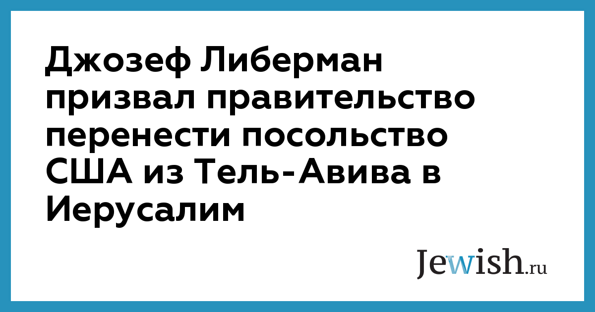 Джозеф Либерман призвал правительство перенести посольство США из Тель-Авива в Иерусалим