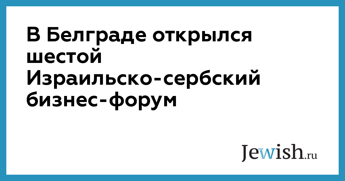 В Белграде открылся шестой Израильско-сербский бизнес-форум