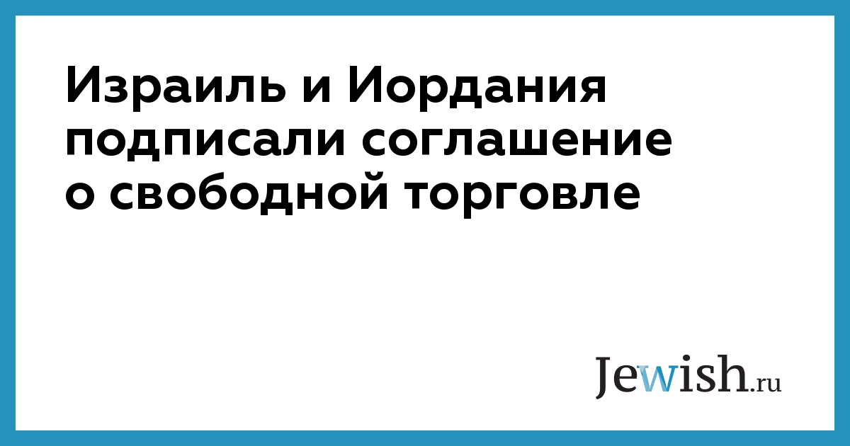 Израиль и Иордания подписали соглашение о свободной торговле