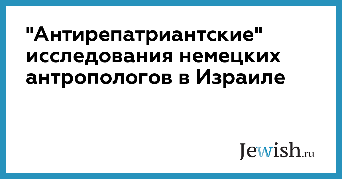"Антирепатриантские" исследования немецких антропологов в Израиле