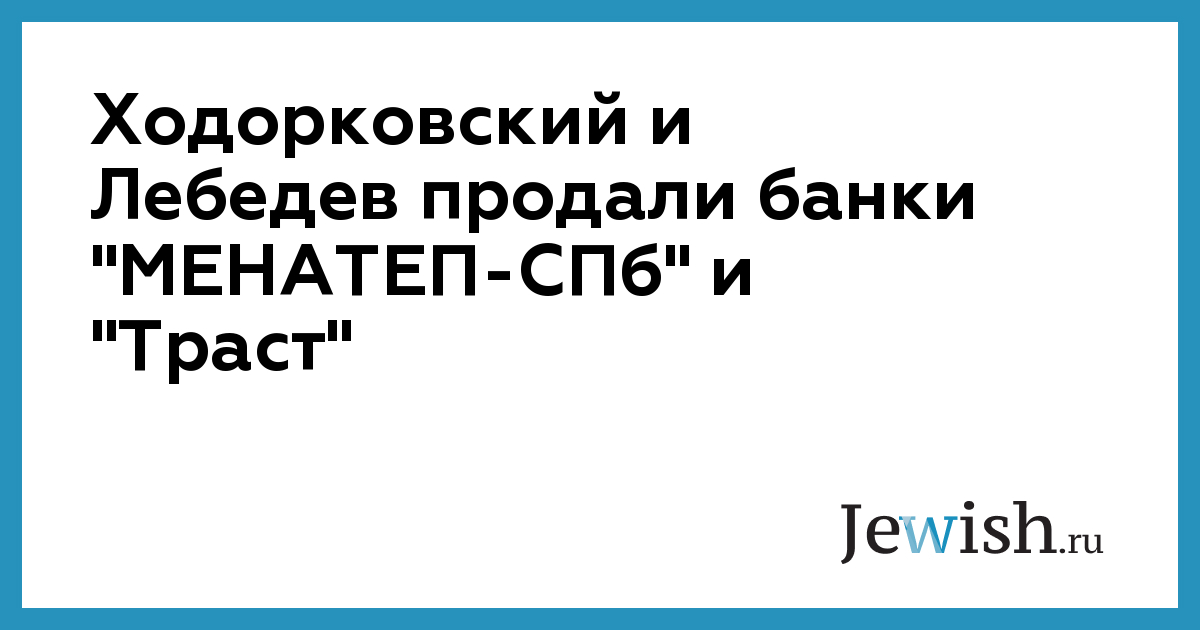 Ходорковский и Лебедев продали банки "МЕНАТЕП-СПб" и "Траст"