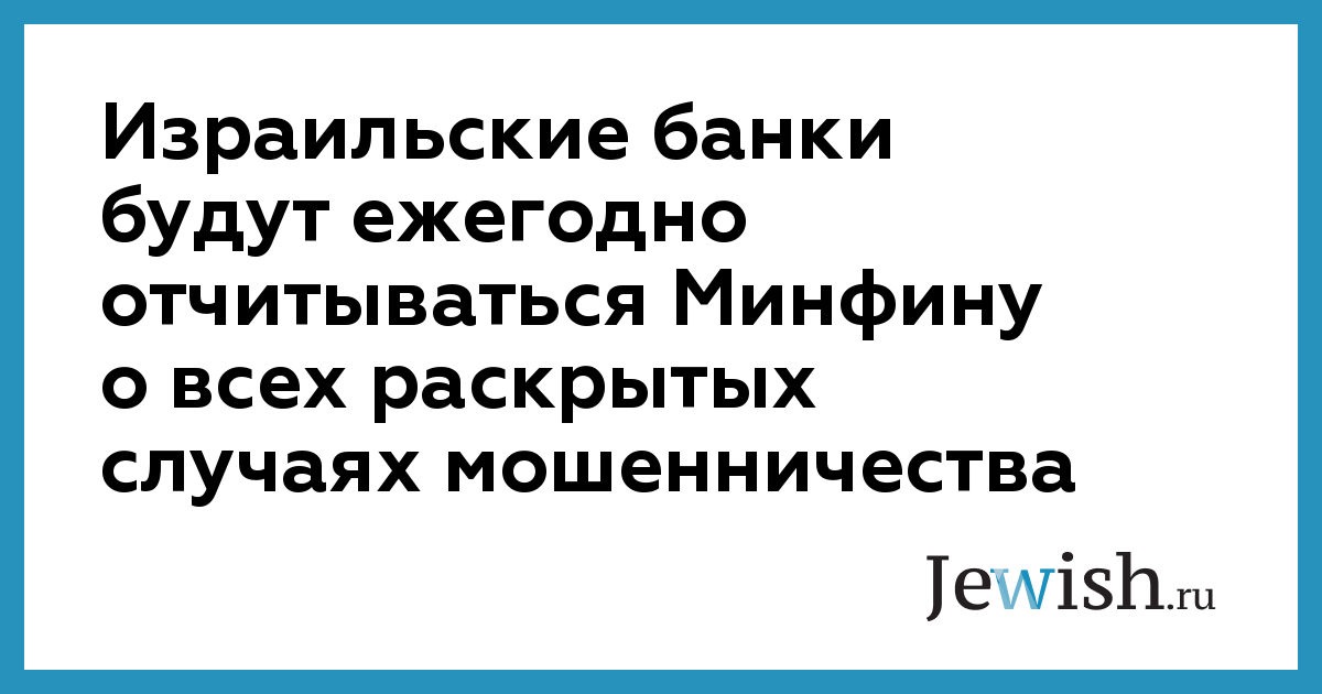 Израильские банки будут ежегодно отчитываться Минфину о всех раскрытых случаях мошенничества