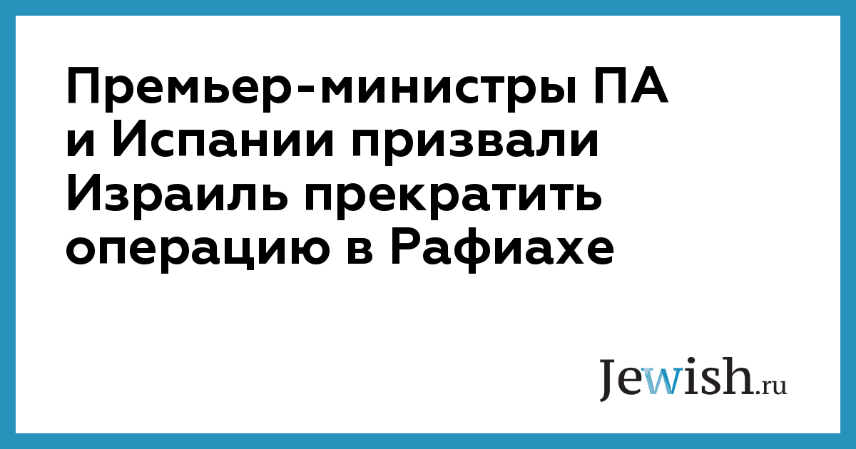 Премьер-министры ПА и Испании призвали Израиль прекратить операцию в Рафиахе
