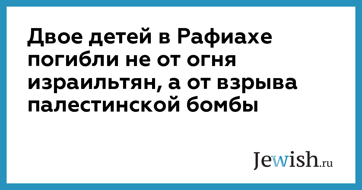 Двое детей в Рафиахе погибли не от огня израильтян, а от взрыва палестинской бомбы