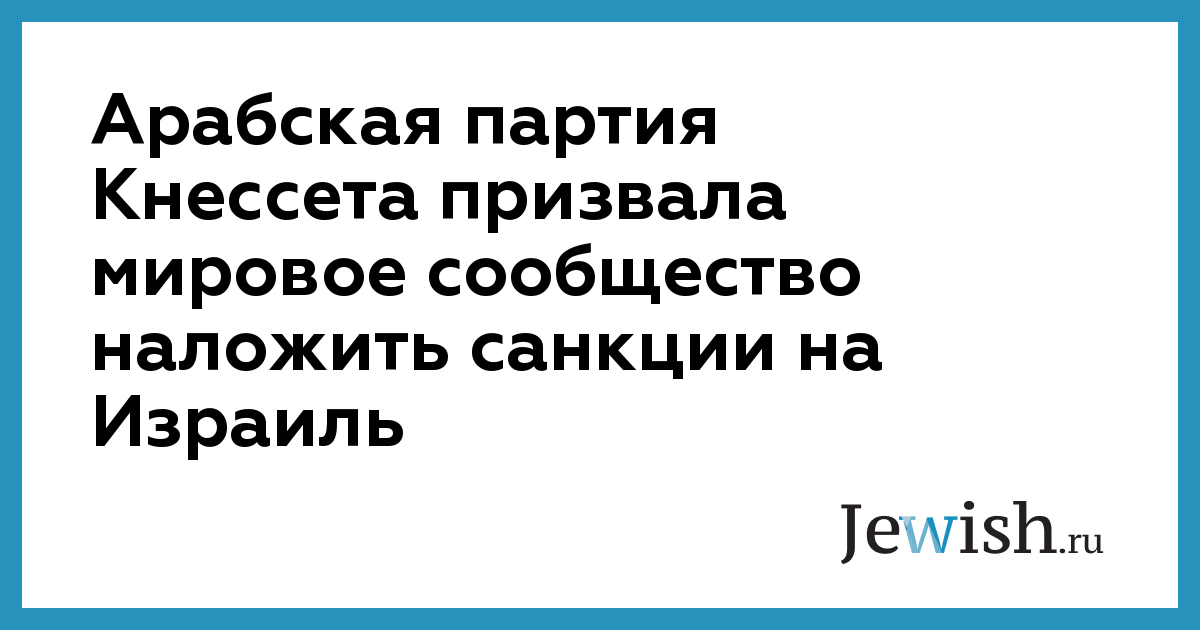 Арабская партия Кнессета призвала мировое сообщество наложить санкции на Израиль