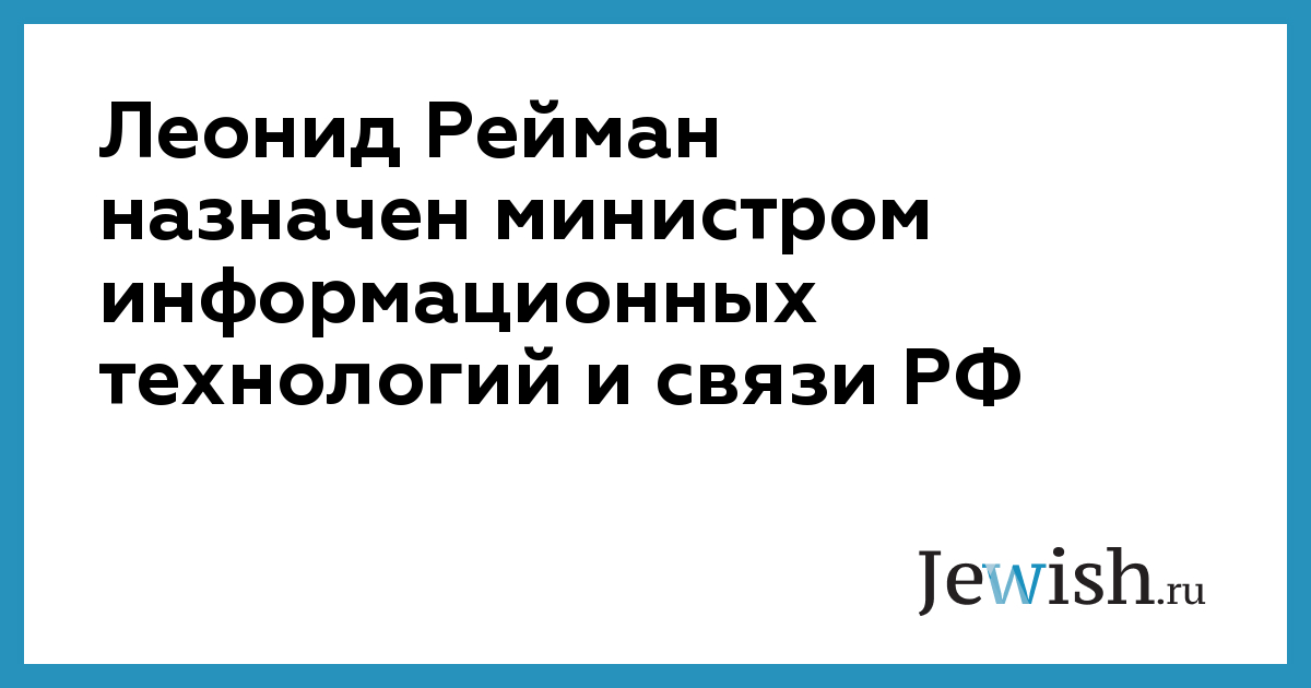 Леонид Рейман назначен министром информационных технологий и связи РФ