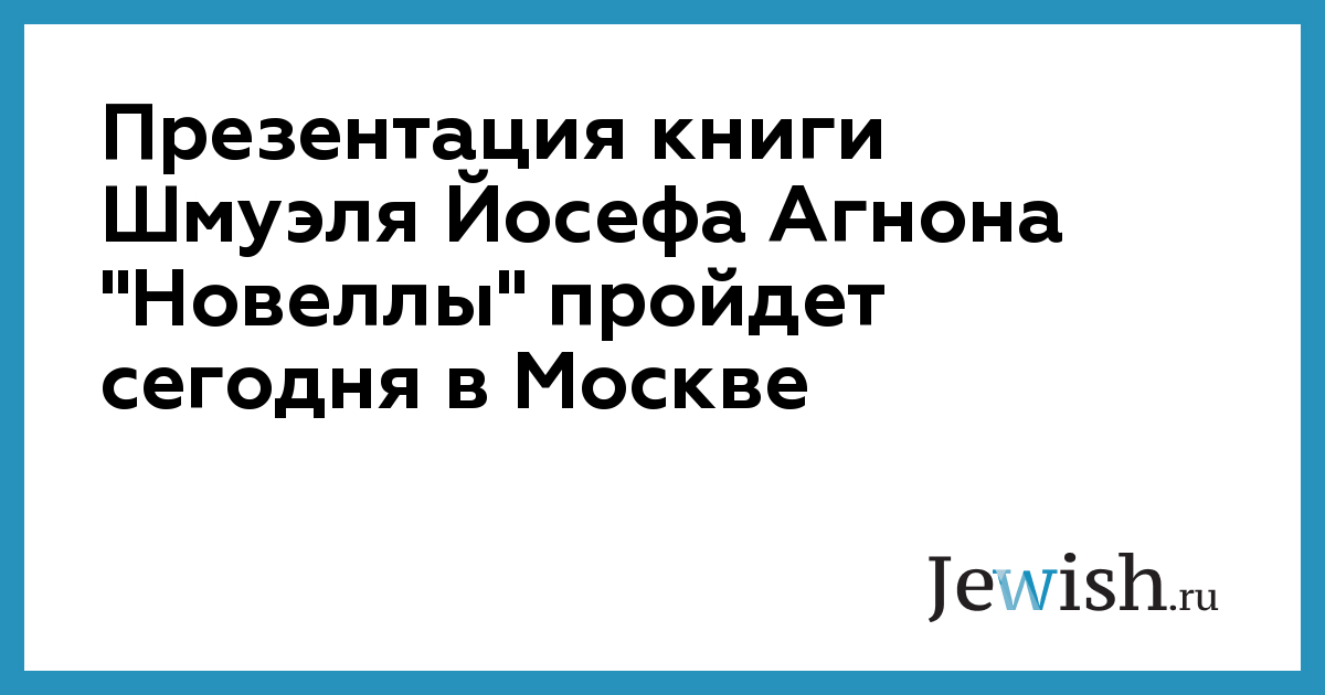 Презентация книги Шмуэля Йосефа Агнона "Новеллы" пройдет сегодня в Москве