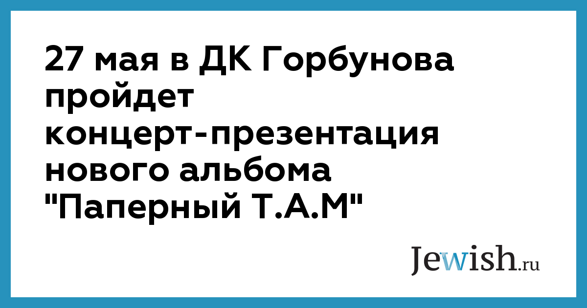 27 мая в ДК Горбунова пройдет концерт-презентация нового альбома "Паперный Т.А.М"