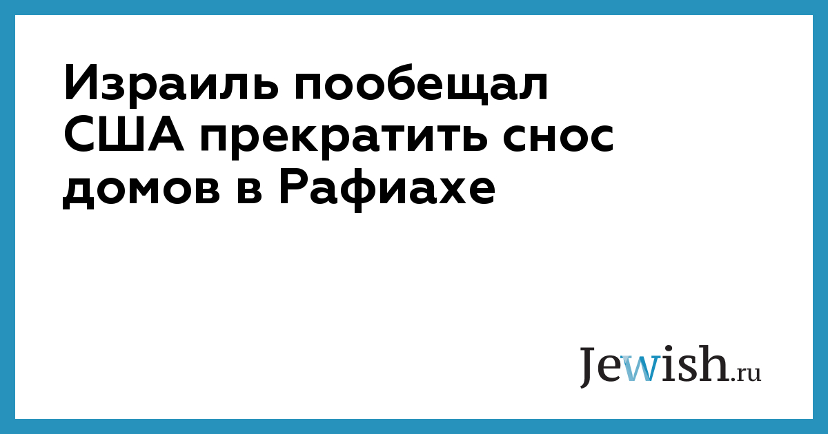 Израиль пообещал США прекратить снос домов в Рафиахе