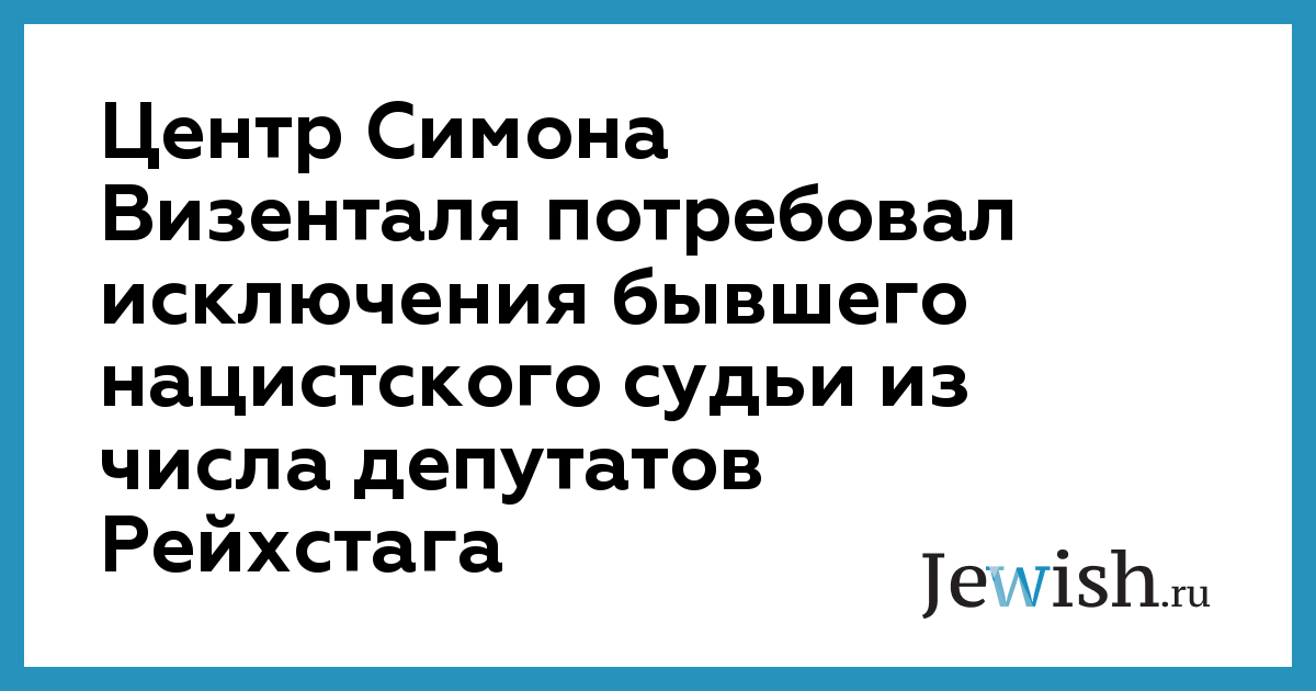 Центр Симона Визенталя потребовал исключения бывшего нацистского судьи из числа депутатов Рейхстага