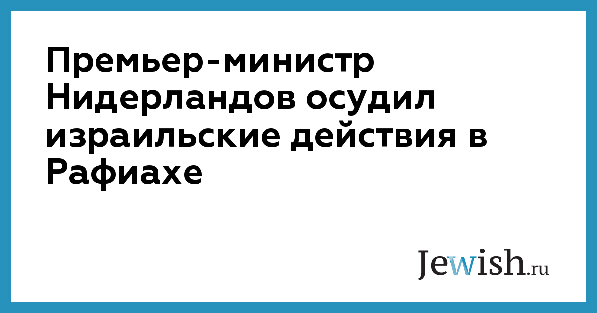 Премьер-министр Нидерландов осудил израильские действия в Рафиахе