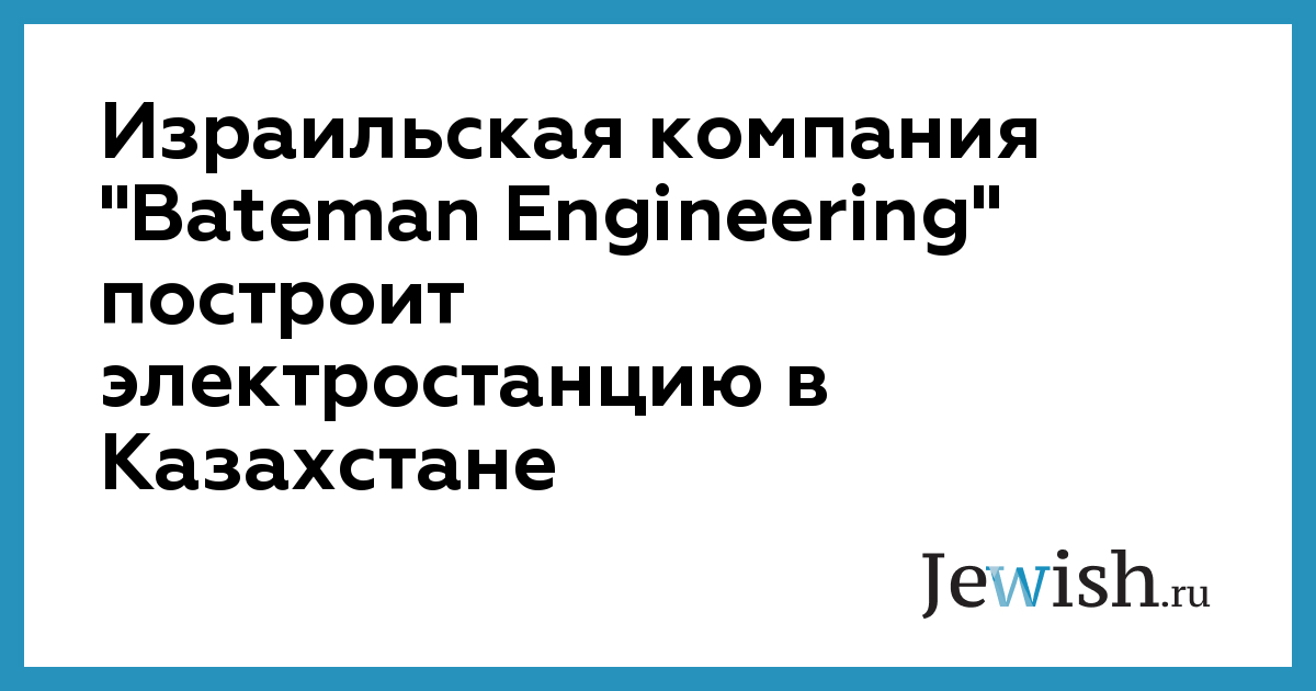 Израильская компания "Bateman Engineering" построит электростанцию в Казахстане