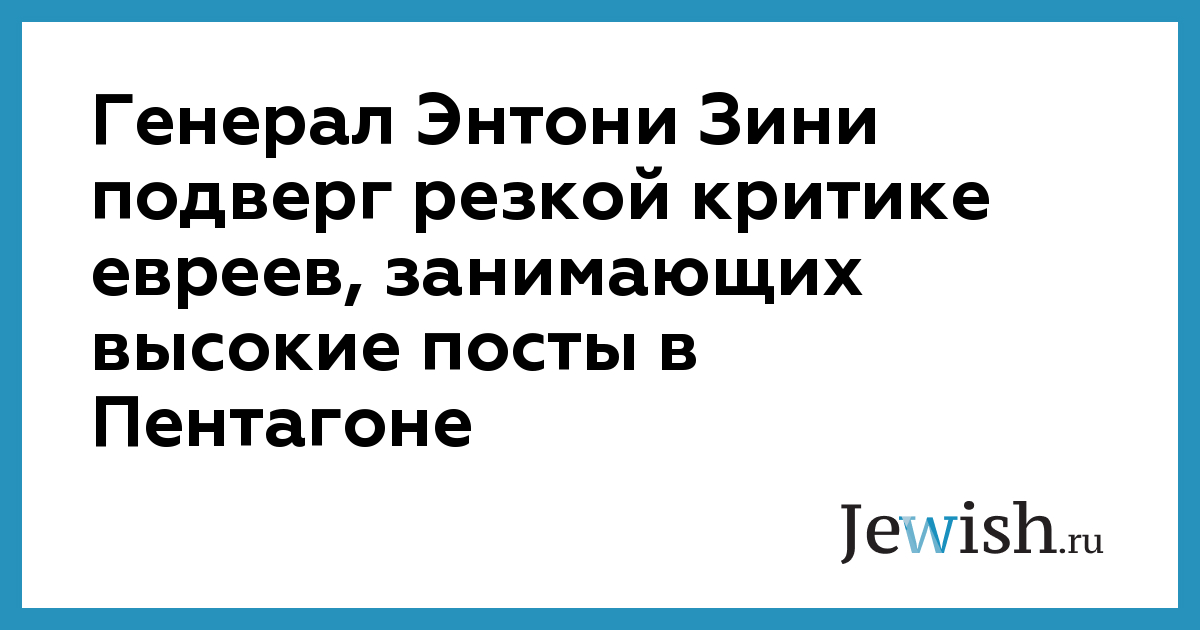 Генерал Энтони Зини подверг резкой критике евреев, занимающих высокие посты в Пентагоне