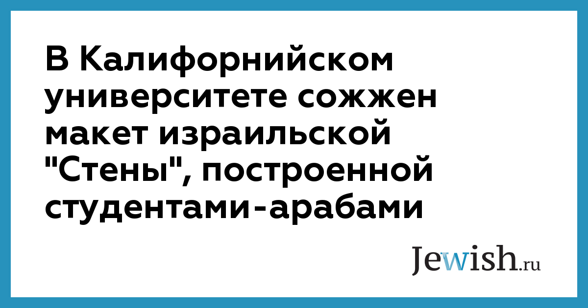 В Калифорнийском университете сожжен макет израильской "Стены", построенной студентами-арабами