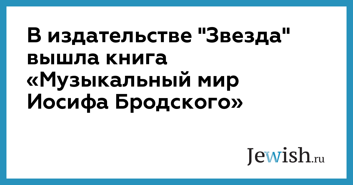 В издательстве "Звезда" вышла книга «Музыкальный мир Иосифа Бродского»