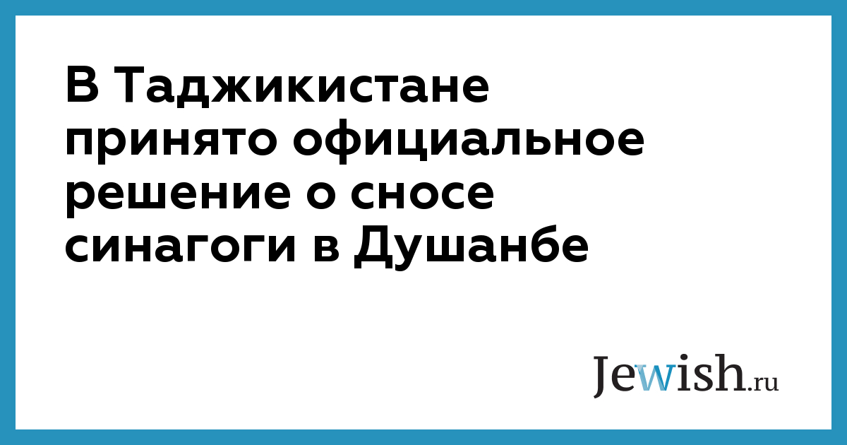 В Таджикистане принято официальное решение о сносе синагоги в Душанбе
