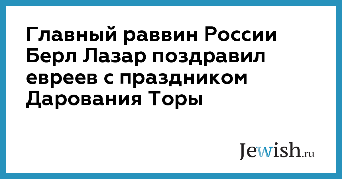 Главный раввин России Берл Лазар поздравил евреев с праздником Дарования Торы