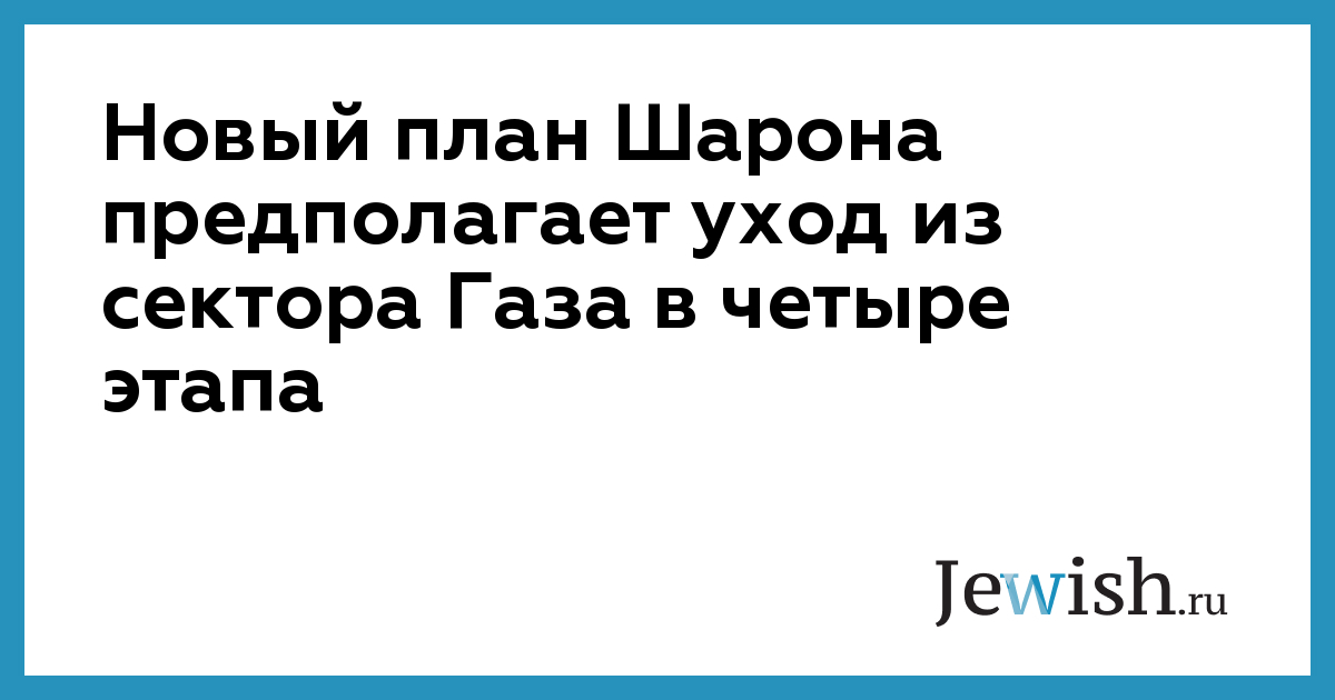 Новый план Шарона предполагает уход из сектора Газа в четыре этапа
