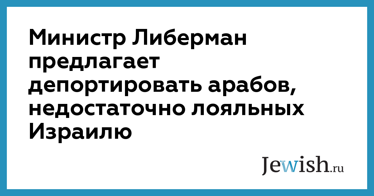 Министр Либерман предлагает депортировать арабов, недостаточно лояльных Израилю