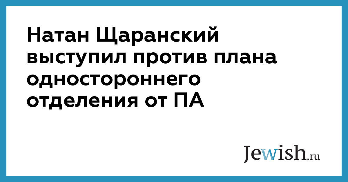 Натан Щаранский выступил против плана одностороннего отделения от ПА