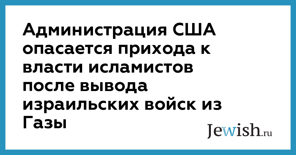 Администрация США опасается прихода к власти исламистов после вывода израильских войск из Газы