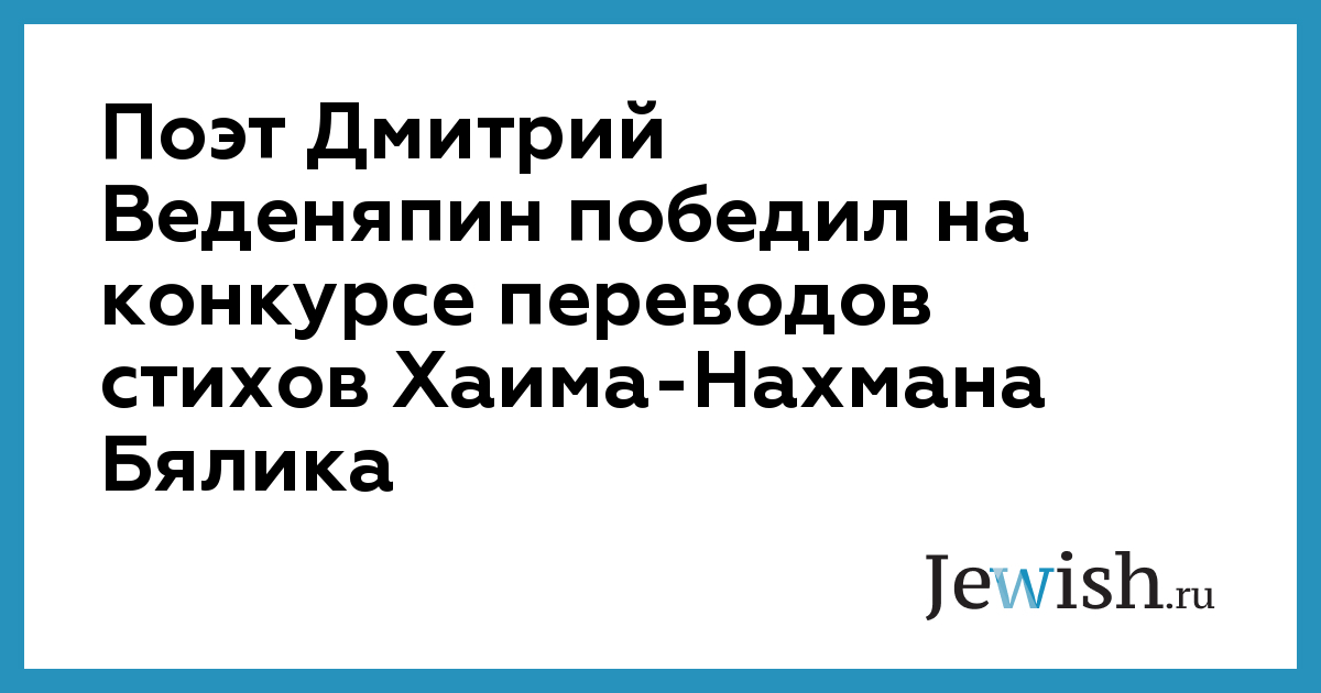 Поэт Дмитрий Веденяпин победил на конкурсе переводов стихов Хаима-Нахмана Бялика