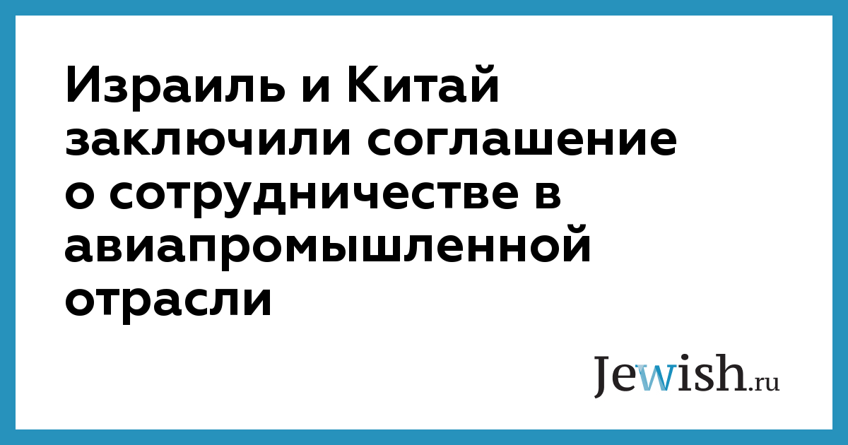 Израиль и Китай заключили соглашение о сотрудничестве в авиапромышленной отрасли