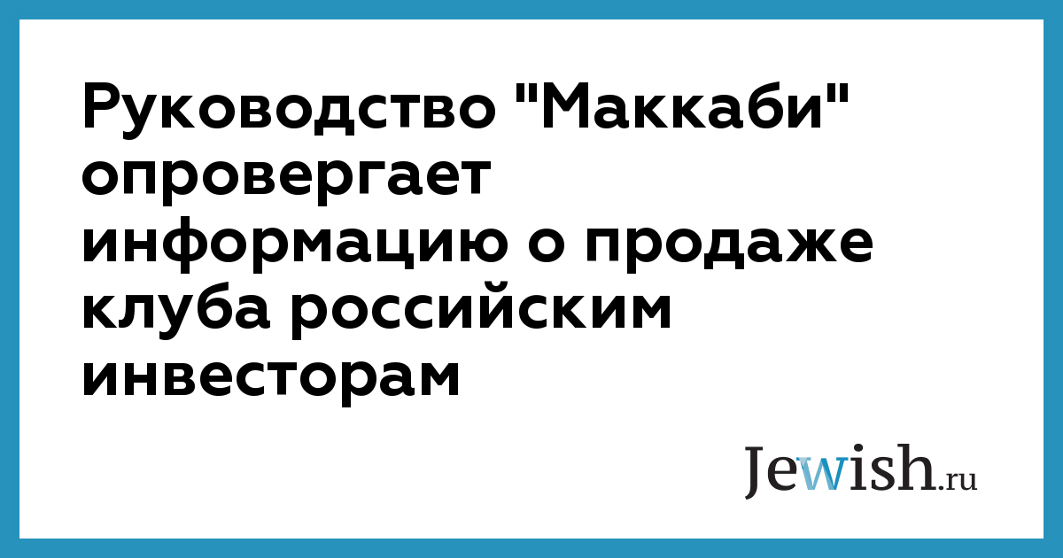 "Могу заявить от лица всего руководства нашего клуба, что никто не обращался к нам с предложениями о какой-либо сделке, — заявил вице-президент “Маккаби” Эри Брикс. – Понятно, что никаких переговоров ни с какими "инвесторами" из России или любой другой страны мы не вели и не ведем”.