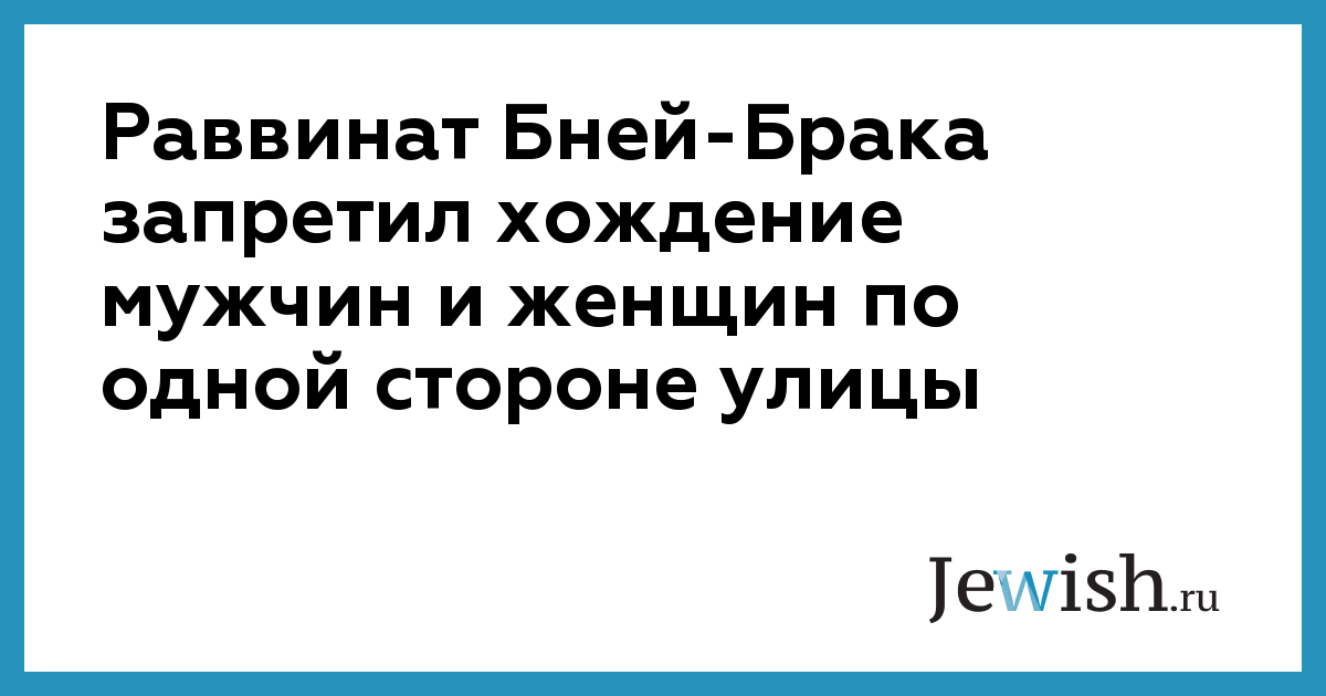 Раввинат Бней-Брака запретил хождение мужчин и женщин по одной стороне улицы