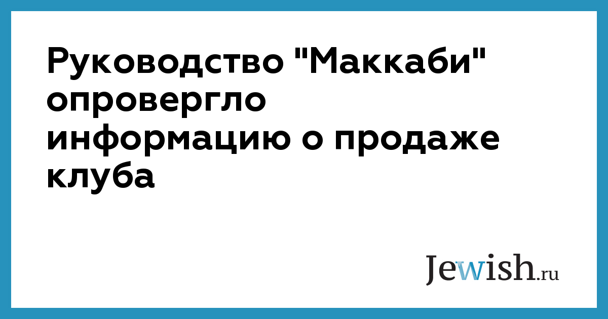 Руководство "Маккаби" опровергло информацию о продаже клуба