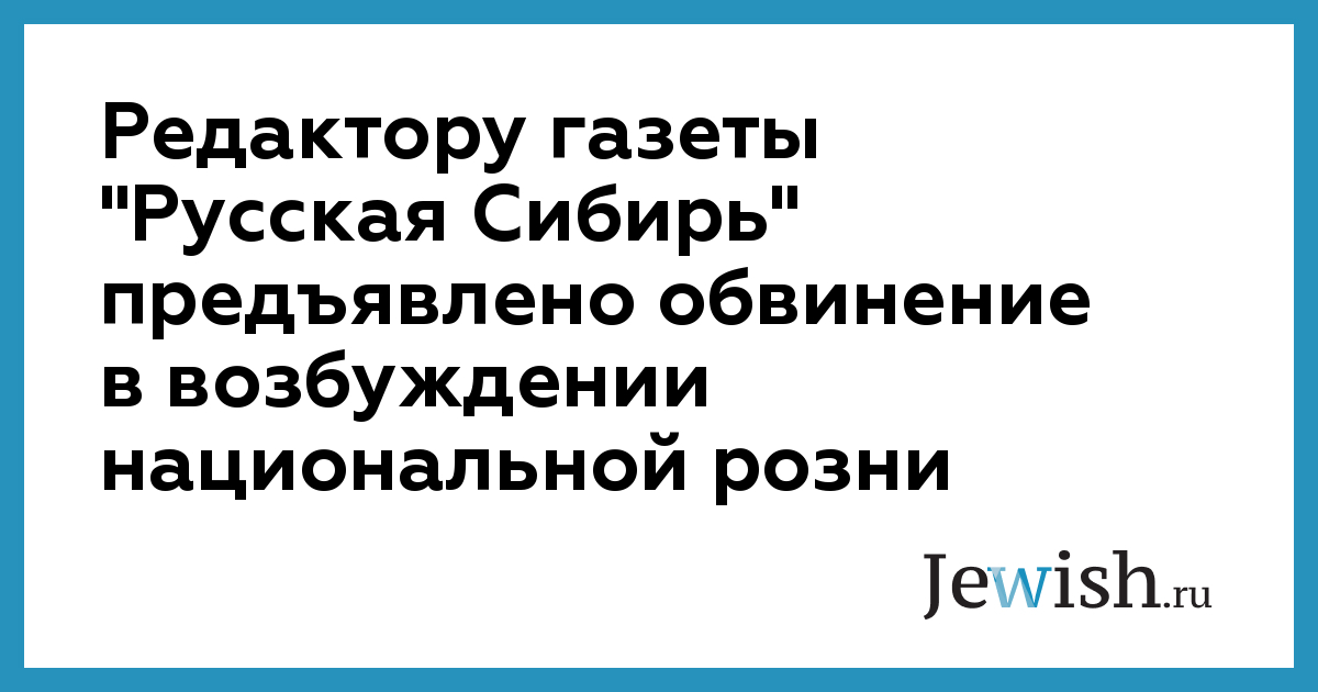 Редактору газеты "Русская Сибирь" предъявлено обвинение в возбуждении национальной розни