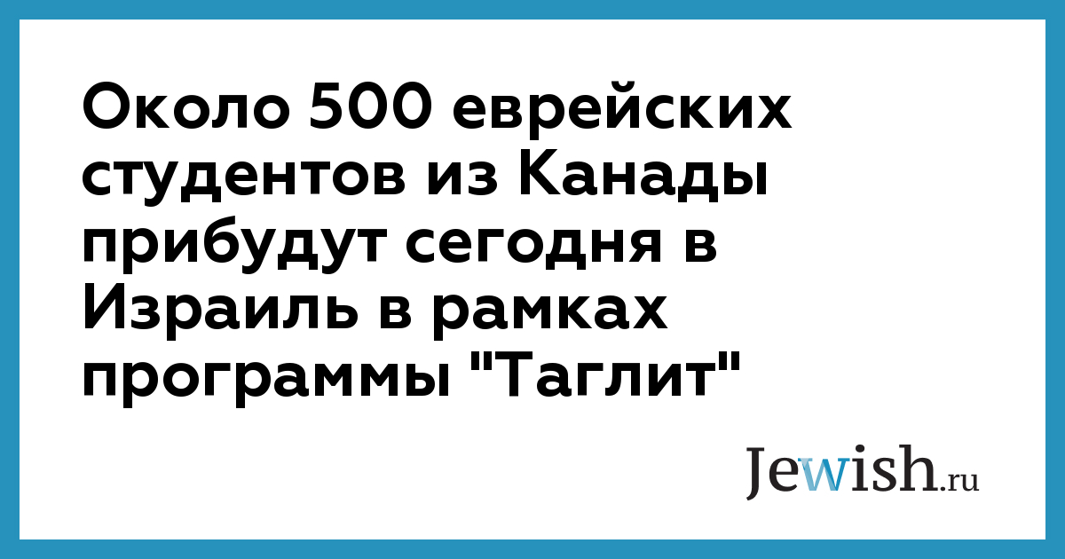 Около 500 еврейских студентов из Канады прибудут сегодня в Израиль в рамках программы "Таглит"