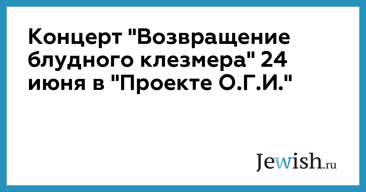 Концерт "Возвращение блудного клезмера" 24 июня в "Проекте О.Г.И."