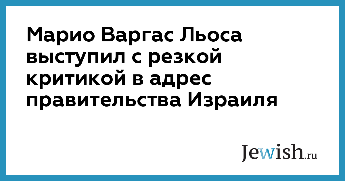 Марио Варгас Льоса выступил с резкой критикой в адрес правительства Израиля