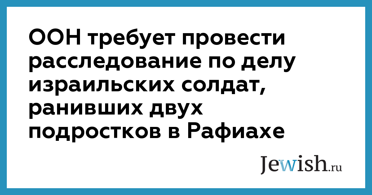 ООН требует провести расследование по делу израильских солдат, ранивших двух подростков в Рафиахе