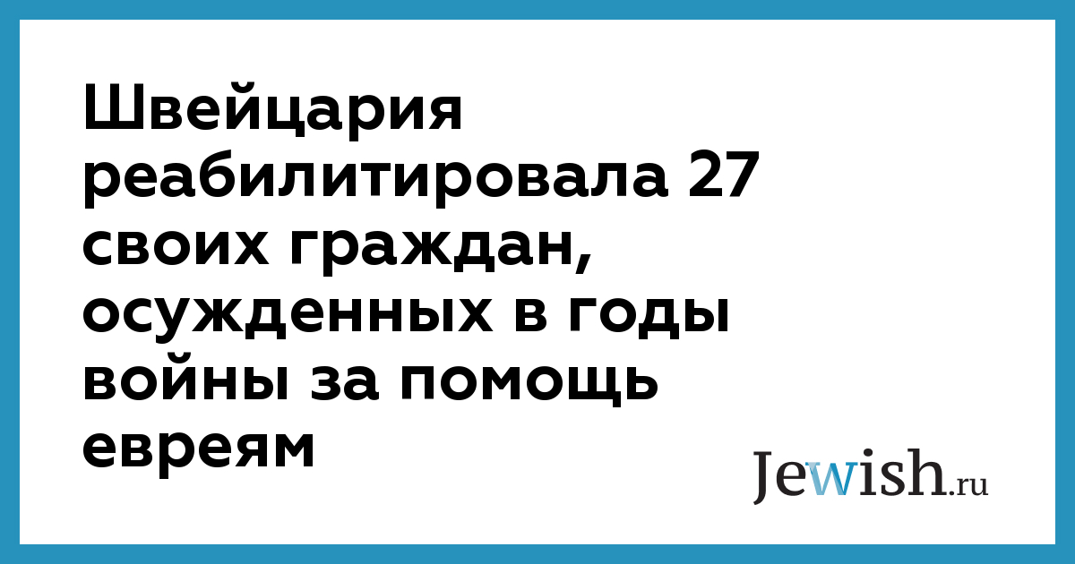 Швейцария реабилитировала 27 своих граждан, осужденных в годы войны за помощь евреям