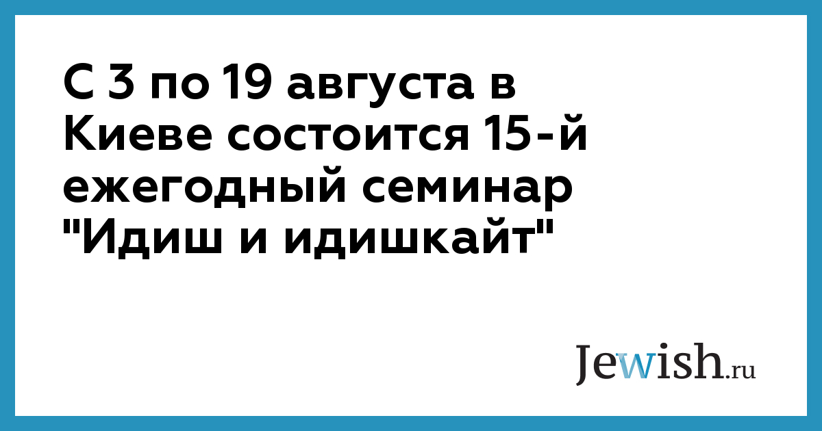 С 3 по 19 августа в Киеве состоится 15-й ежегодный семинар "Идиш и идишкайт"