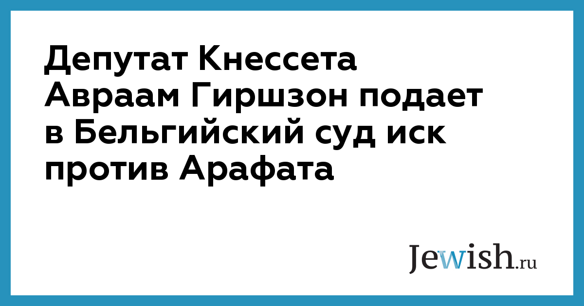 Депутат Кнессета Авраам Гиршзон подает в Бельгийский суд иск против Арафата