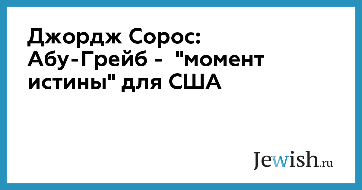 Джордж Сорос: Абу-Грейб — "момент истины" для США