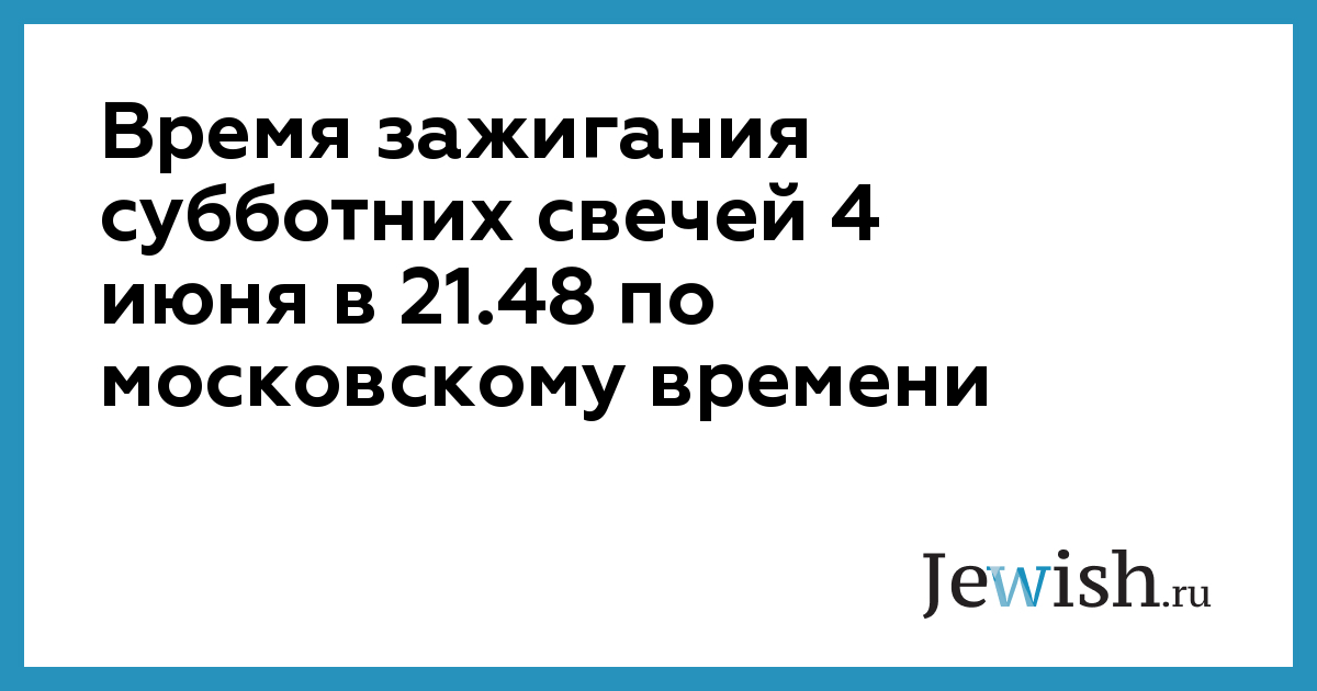 Время зажигания субботних свечей 4 июня в 21.48 по московскому времени