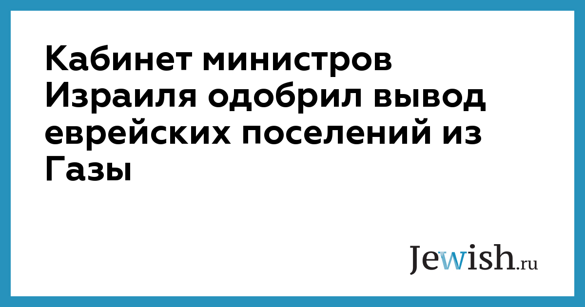Кабинет министров Израиля одобрил вывод еврейских поселений из Газы