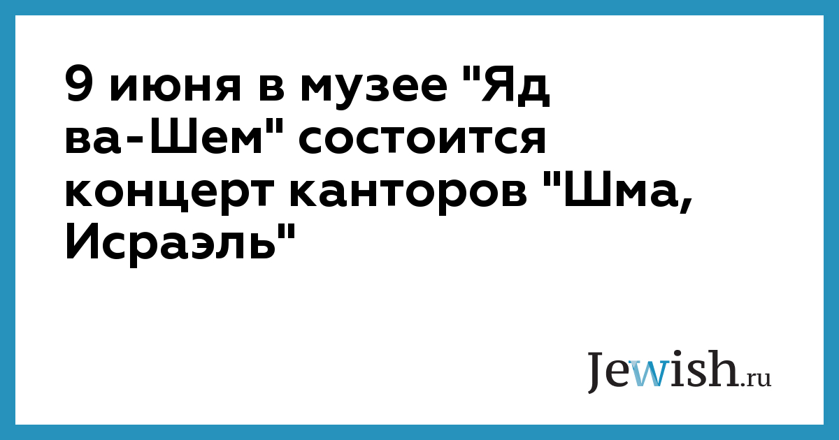 9 июня в музее "Яд ва-Шем" состоится концерт канторов "Шма, Исраэль"